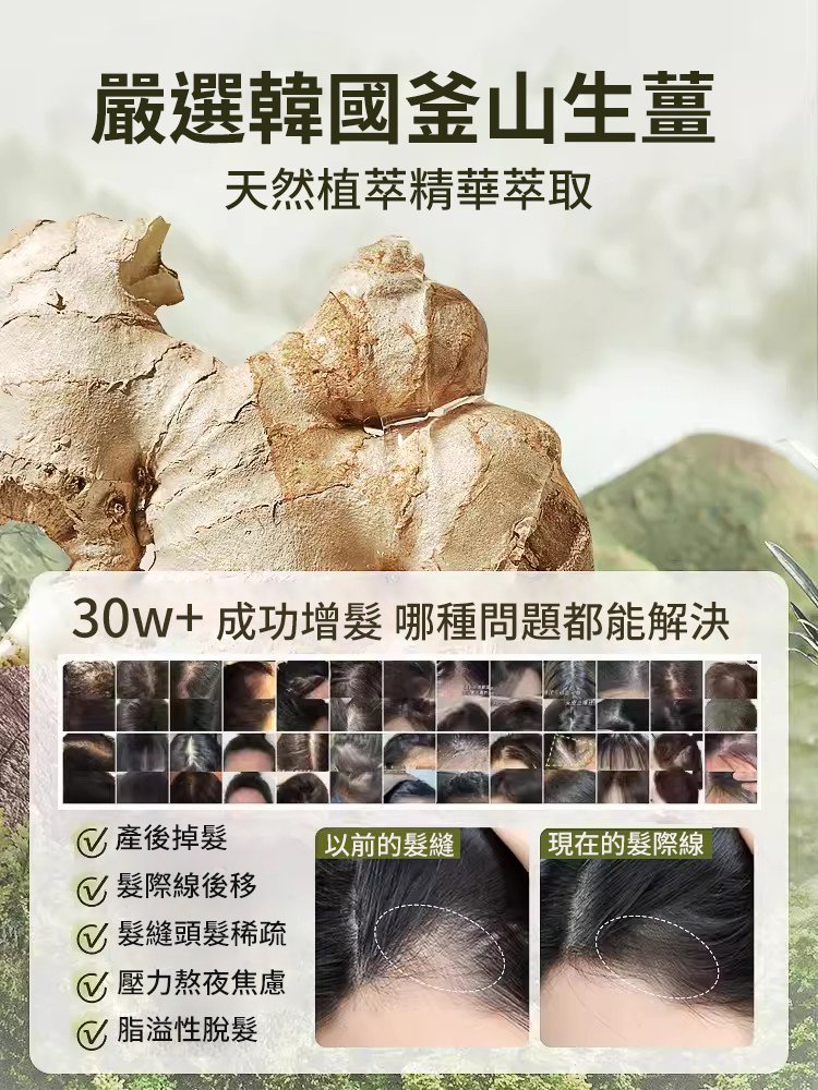 🔥【髮量暴漲3倍⬆️】生薑 #防脫育髮✅100%草本精華,從根源治脫髮,越洗越多!🍀純草本育發配方,快速生髮滋養強韌髮根!